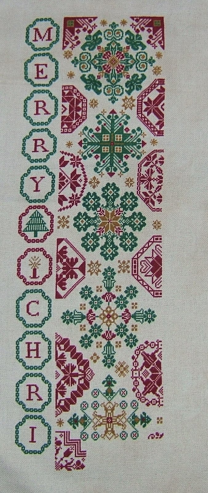 Here is the Christmas Quaker Bellpull so far, I am on page 5 of 6 pages. It looks great and I love stitching on it when I am stitching.