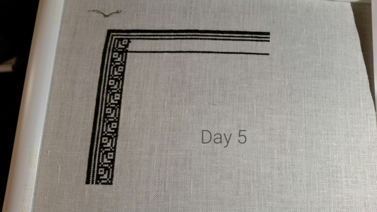 Death by Cross Stitch has been moved to 17" by 14" Q-Snaps and the big ass stitching frame is apart and put away. I am able to stitch with the Q-Snaps resting against my lap desk.